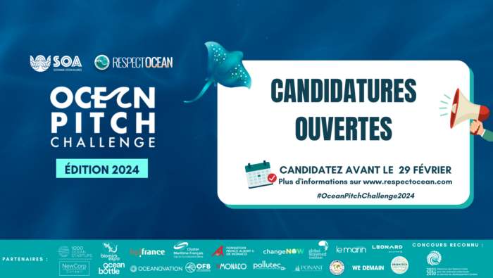 Vous avez une solution ? Vous portez un projet ou une innovation qui contribue à préserver l’Océan ? Candidatez dès aujourd’hui à l'Ocean pitch challenge® 2024, co-organisé avec Sustainable Ocean Alliance