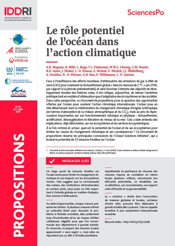 Le rôle potentiel de l'océan dans l'action climatique, 2018